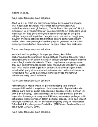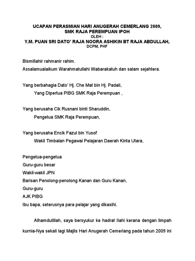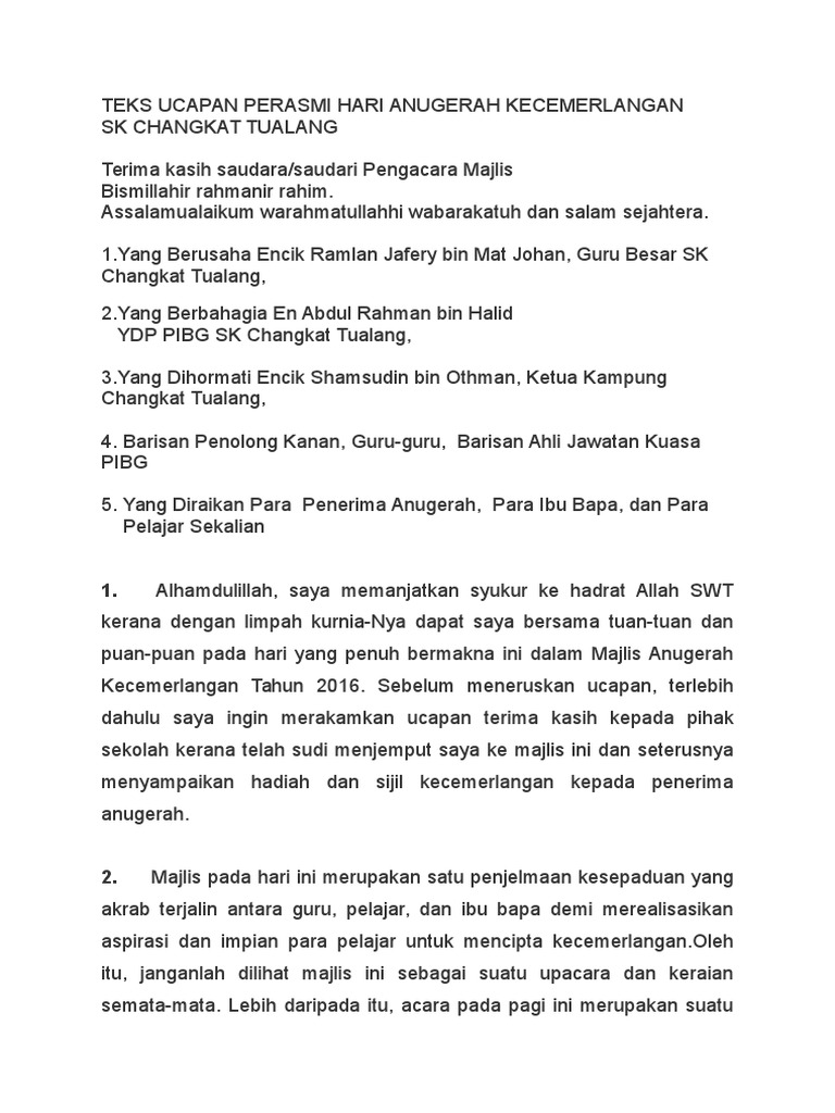 Teks Ucapan Perasmi Hari Anugerah Kecemerlangan Skct Pdf