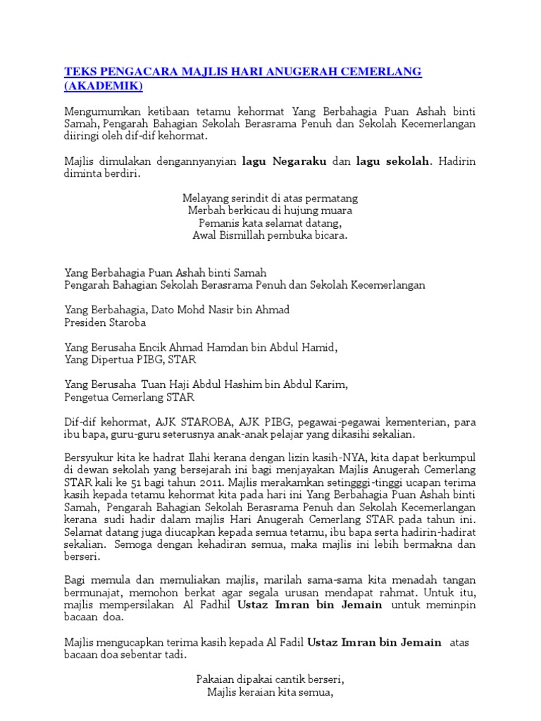 Teks Pengacara Majlis Hari Anugerah Cemerlang Pdf